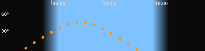 | Höchster Stand (Kulmination) | 09:22 Uhr (h = 51°) |