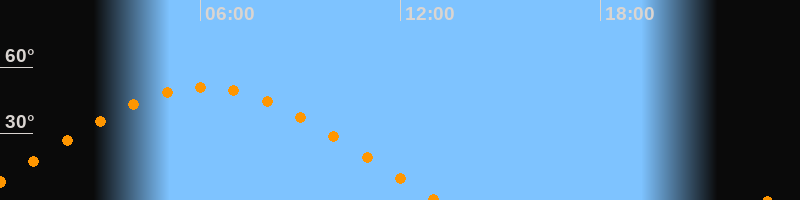 | Höchster Stand (Kulmination) | 06:05 Uhr (h = 51°) |