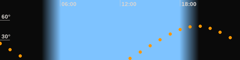 | Höchster Stand (Kulmination) | 19:40 Uhr (h = 51°) |