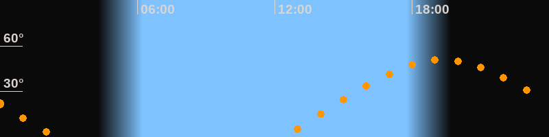 | Aufgang | 12:19 Uhr im Osten (αAz = 70,6°) |