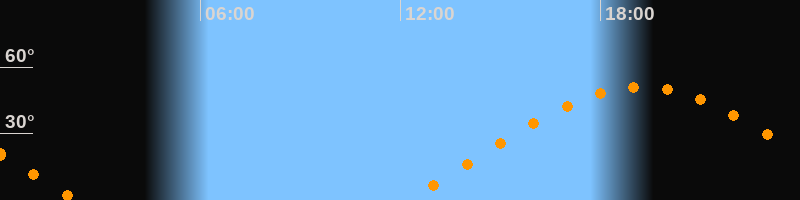 | Aufgang | 12:11 Uhr im Osten (αAz = 70,6°) |