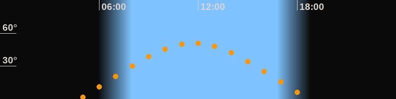 | Höchster Stand (Kulmination) | 11:44 Uhr (h = 51°) |