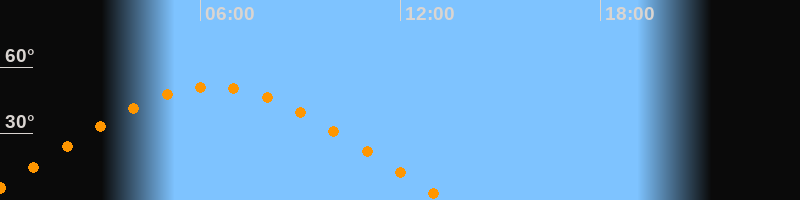 | Höchster Stand (Kulmination) | 06:22 Uhr (h = 51°) |