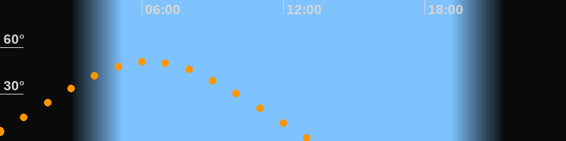 | Höchster Stand (Kulmination) | 06:18 Uhr (h = 51°) |