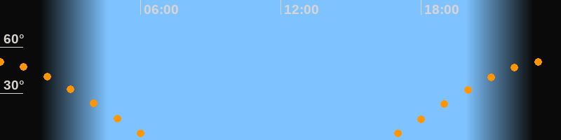 | Aufgang | 16:28 Uhr im Osten (αAz = 70,6°) |