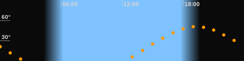 | Aufgang | 12:16 Uhr im Osten (αAz = 70,6°) |