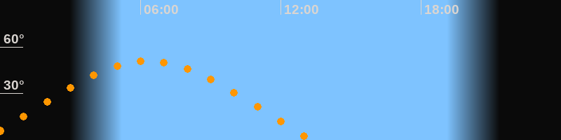 | Höchster Stand (Kulmination) | 06:19 Uhr (h = 51°) |