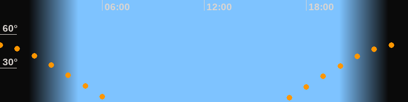| Aufgang | 16:29 Uhr im Osten (αAz = 70,6°) |