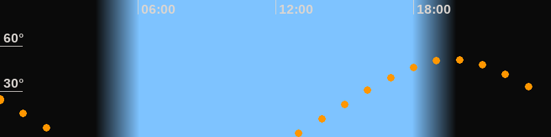 | Aufgang | 12:37 Uhr im Osten (αAz = 70,6°) |
