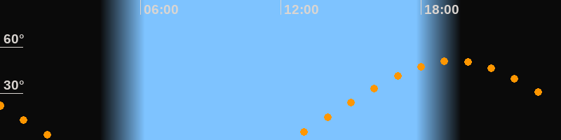 | Aufgang | 12:21 Uhr im Osten (αAz = 70,6°) |