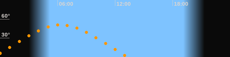 | Höchster Stand (Kulmination) | 06:20 Uhr (h = 51°) |
