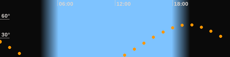 | Höchster Stand (Kulmination) | 19:35 Uhr (h = 51°) |