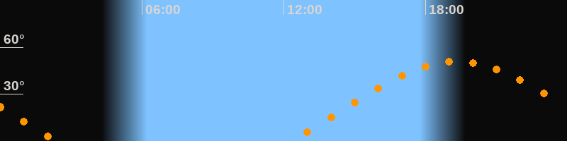 | Aufgang | 12:18 Uhr im Osten (αAz = 70,6°) |