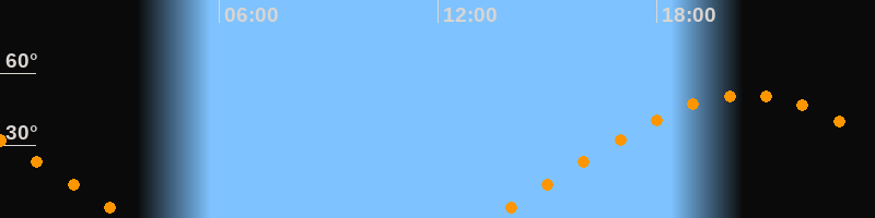 | Aufgang | 13:26 Uhr im Osten (αAz = 70,6°) |