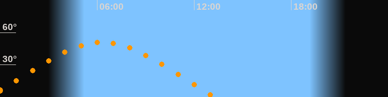 | Höchster Stand (Kulmination) | 06:18 Uhr (h = 51°) |
