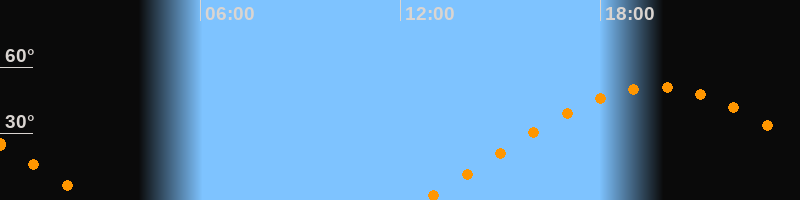 | Aufgang | 12:39 Uhr im Osten (αAz = 70,6°) |