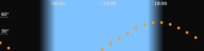| Höchster Stand (Kulmination) | 18:34 Uhr (h = 51°) |