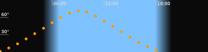 | Höchster Stand (Kulmination) | 09:10 Uhr (h = 71,6°) |