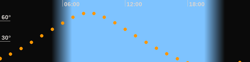 | Höchster Stand (Kulmination) | 08:30 Uhr (h = 71,6°) |