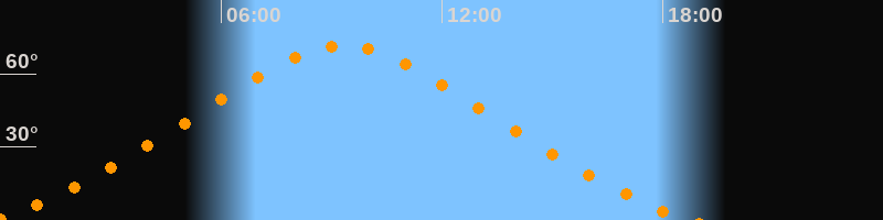 | Höchster Stand (Kulmination) | 09:19 Uhr (h = 71,6°) |