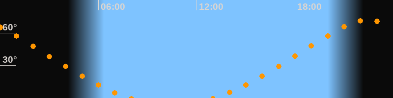 | Aufgang | 12:59 Uhr im Nordosten (αAz = 31°) |