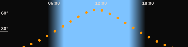 | Höchster Stand (Kulmination) | 12:21 Uhr (h = 71,6°) |