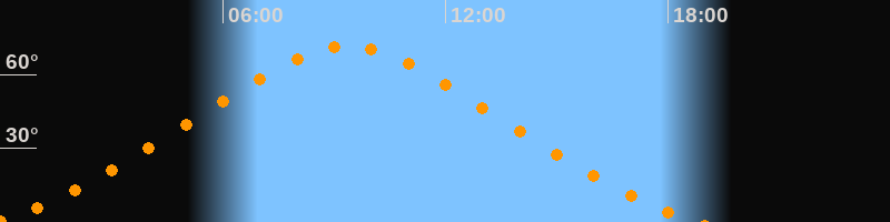 | Höchster Stand (Kulmination) | 09:21 Uhr (h = 71,6°) |