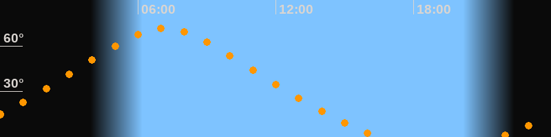 | Höchster Stand (Kulmination) | 07:08 Uhr (h = 71,6°) |