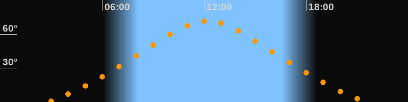 | Höchster Stand (Kulmination) | 12:11 Uhr (h = 71,6°) |
