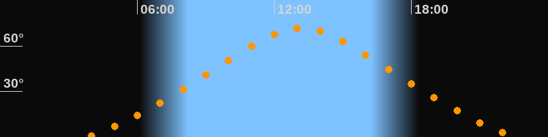 | Höchster Stand (Kulmination) | 13:11 Uhr (h = 71,6°) |