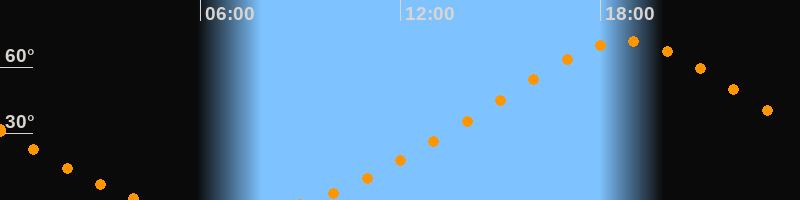 | Höchster Stand (Kulmination) | 18:45 Uhr (h = 71,6°) |