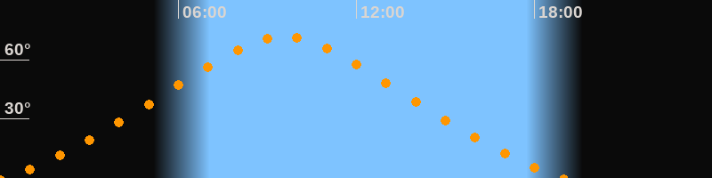 | Höchster Stand (Kulmination) | 09:33 Uhr (h = 71,6°) |