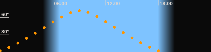 | Untergang | 18:30 Uhr im Nordwesten (αAz = 329°) |