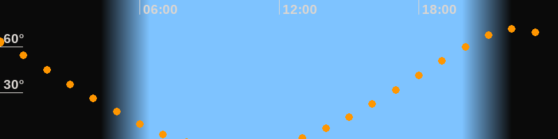 | Aufgang | 12:42 Uhr im Nordosten (αAz = 31°) |