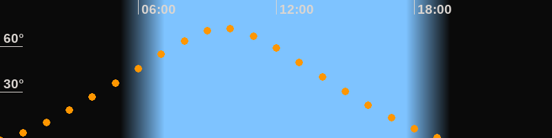 | Höchster Stand (Kulmination) | 09:42 Uhr (h = 71,6°) |
