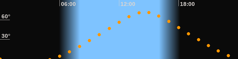 | Höchster Stand (Kulmination) | 14:34 Uhr (h = 71,6°) |
