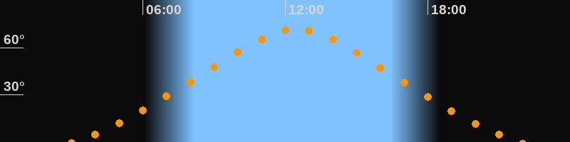 | Höchster Stand (Kulmination) | 12:28 Uhr (h = 71,6°) |