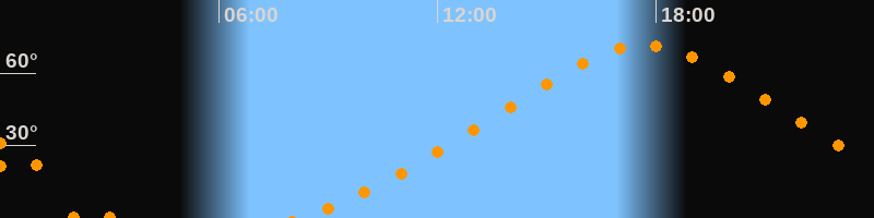| Höchster Stand (Kulmination) | 17:40 Uhr (h = 71,6°) |