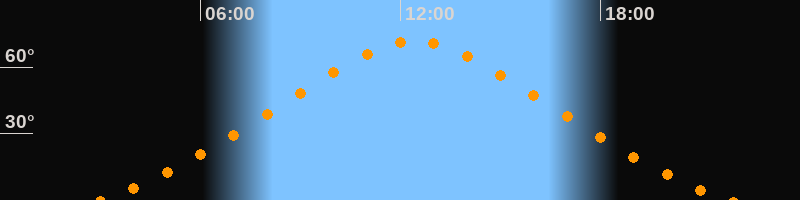 | Höchster Stand (Kulmination) | 12:26 Uhr (h = 71,6°) |