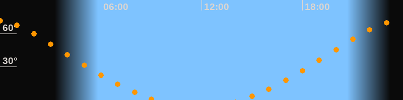| Untergang | 09:17 Uhr im Nordwesten (αAz = 329°) |