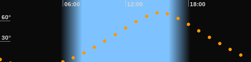 | Höchster Stand (Kulmination) | 15:17 Uhr (h = 71,6°) |
