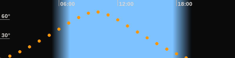 | Höchster Stand (Kulmination) | 09:46 Uhr (h = 71,6°) |