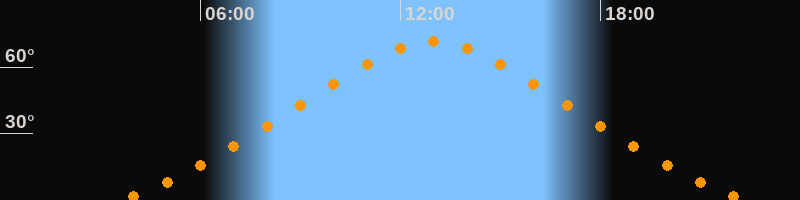 | Höchster Stand (Kulmination) | 12:59 Uhr (h = 71,6°) |