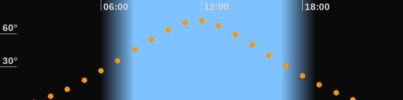 | Höchster Stand (Kulmination) | 11:45 Uhr (h = 71,6°) |