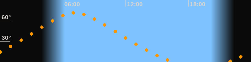 | Höchster Stand (Kulmination) | 07:10 Uhr (h = 71,6°) |