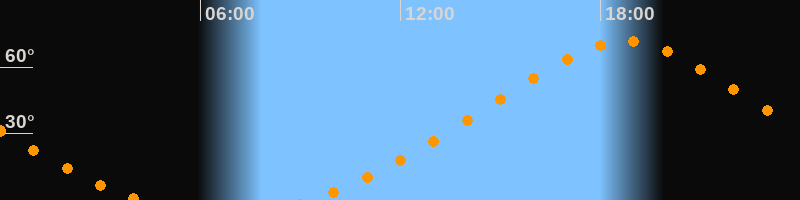 | Höchster Stand (Kulmination) | 18:43 Uhr (h = 71,6°) |