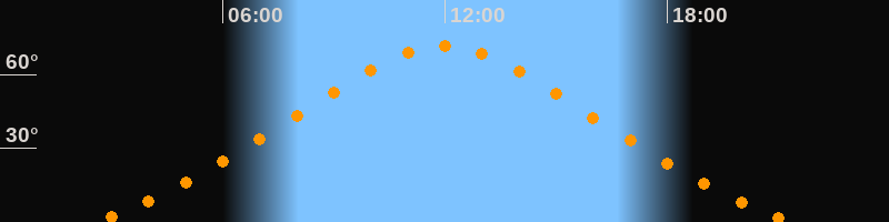 | Höchster Stand (Kulmination) | 11:57 Uhr (h = 71,6°) |