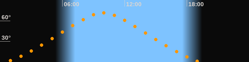 | Höchster Stand (Kulmination) | 09:55 Uhr (h = 71,6°) |