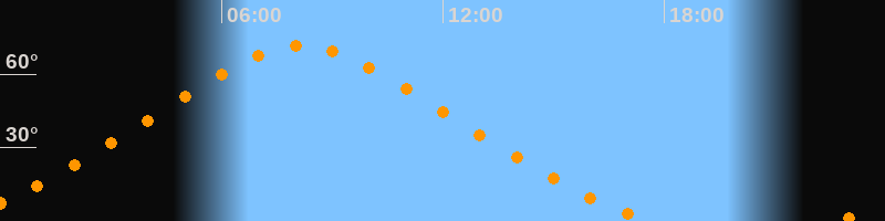 | Höchster Stand (Kulmination) | 08:10 Uhr (h = 71,6°) |