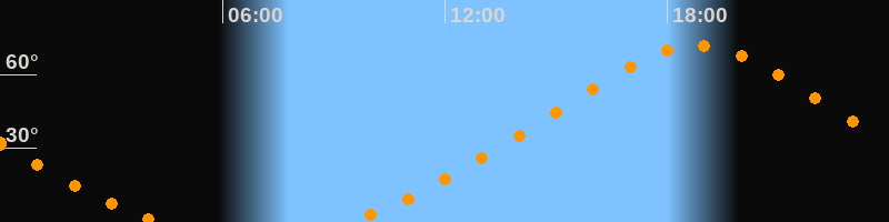 | Höchster Stand (Kulmination) | 18:48 Uhr (h = 71,6°) |